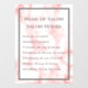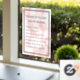 This elegant faux pink marble window cling has grey text that you can edit to replace the display text with the correct information. At the top, there's a line of large grey display text you can replace with your salon's name. The next line says "Salon Hours" (you may change if desired). Under the two lines of large grey text, there are seven lines of smaller grey text for each day of the week. You can change the hours for each day, if necessary.