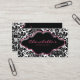 Carte de visite spa de salon de maquillage avec lèvres et joli arrière - plan à damas fleuri.