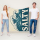 Giant whitecap waves roll toward the beach in this retro style coastal graphic. Cream vintage SALTY text makes a bold contrast against the teal blue ocean. Made for beach bums, surfers, sun seekers and anyone living on island time. This soft and cozy white sand fleece throw blanket is the perfect addition to your beach house decor. | Matching throw pillow available in my store.