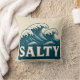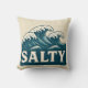 Giant whitecap waves roll toward the beach in this retro style coastal graphic. Cream vintage SALTY text makes a bold contrast against the teal blue ocean. Made for beach bums, surfers, sun seekers and anyone living on island time. This white sand throw pillow is the perfect addition to your beach house decor. | Matching throw blanket available in my store.