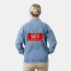Travel back in time to the year 1969 with this vintage-inspired SALTY license plate design. Bold embossed-style cream text pops on the red contrast. The use of retro-style lettering, realistic screws and Sunshine State slogan keep the vintage vibe realistic. The unique graphic is printed on the back for maximum impact. This eye catching denim jacket is the perfect statement layer for weekend adventures and everyday coastal life.