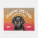 Saluki Personalized Dog lover welcome doormat. This welcome mat can be personalized with your dog’s name, the slogan can also be changed or you could use a picture of your own dog (make sure it's transparent). Text reads: Theodore lives here…. All treats welcome