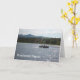Une carte d'anniversaire avec le "joyeux anniversaire" dans Gallois et une photographie d'un bateau sur le lac Llangorse, Powys, avec les balises de Brecon à l'arrière-plan.