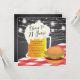 Salutations à 21 ans invitation barbecue avec une tasse à bière & burger ensemble sur un arrière - plan de tableau noir avec lumières de pot de mason suspendu