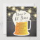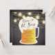 Invitation à 60 ans avec une tasse de bière sur un arrière - plan noir en tableau noir avec des lumières de mât suspendues