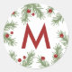 Voix de voeux à feuillage persistant monogrammed autour autocollant. Personnalisable . Une partie d'une collection de Noël.