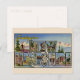 Cette reproduction de carte postale vintage présente de grandes lettres remplies d'images emblématiques du New Hampshire.