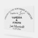 Noms de mariée et de chambre en caractères gras de la typographie noire au centre. Insérer la date du Mariage en bas. Bravo à la nouvelle mariée et mariée, ensemble amoureuse, vient de se marier en noir contre un arrière - plan clair. Conçu pour les tailles verticales 8" x 10", 11" x 14", 18" x 24". Belle signalisation pour réception de mariage avec texte courbe et script. REMARQUE : Pour modifier les couleurs de nom, cliquez sur personnaliser et cliquez sur le champ de calque de nom à gauche, puis sur le côté droit, choisissez dans la palette de couleurs ou entrez un code hexadécimal correspondant aux couleurs mariages, pour modifier la couleur arrière - plan, cliquez sur le côté gauche sur l'arrière - plan et choisissez la couleur. Design original par TamiraZDesigns.