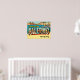 Apportez le coeur de la Sicile à votre mur avec cette illustration de style carte postale rétro. "PALERMO" apparaît en lettres majuscules pleines d'images miniatures de Palerme et de marchés de rue siciliens dynamiques. Idéal pour les amateurs de Sicile.