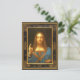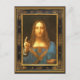 Salvator Mundi by Leonardo da Vinci circa 1500 Postcard ... Leonardo's traditional vision of Christ appearing out of the darkness as the Saviour of the World. Oil and lapis lazuli on walnut panel. This is the art work that broke all sales records at auction in November 15, 2017 for unbelievable $450.3 million! Discovered in near absolute ruin with heavy over-painting and being over 500 years old, it was known to be from Leonardo's workshop, though then thought to had been mostly by his workshop apprentice boys ... but, then was cleaned and dramatically restored and discovered to be much by Leonardo's own hand. Leonardo's workshop was known to have had produced a number of traditional Salvator Mundi oil on wood panels. Leonardo's workshop apprentice boys transferred his drawings onto prepared white coated wood panels by poking holes along the drawn lines. This art work shows Leonardo's famed soft hazy sfumato style. Leonardo is known to have used his own hands to blend paint to soften line edges. Palm prints are seen on this painting. The details reflect the preparatory sketches found in his journals, especially the complex geometric design of the leather strapping. The hands and mouth also reflect Leonardo's preparatory sketches as well as his other known paintings. The robe paint consists of rare imported lapis lazuli that then was more expensive than gold that only Leonardo's wealthy patrons could afford ... the patron believed here to be the king of France. The painting passed from the kings of France to the kings of England by marriage of a French princess to an English king. Leonardo da Vinci was given a home in his final years by a king of France ... the home being connected by tunnel to the king's palace so that the king could visit and check on Leonardo da Vinci. Leonardo lived there with one of his workshop apprentices and young companion the Count Francesco Melzi who though of noble birth devoted his life to caring for Leonardo and to preserving Leonardo's journals some which are now in possession of the collection of the Queen of England. Lapis Lazuli is a blue mineral stone imported then, as now, from the area now called Afghanistan. It is the same rare stone used in the ancient Egyptian pure gold burial mask of boy Pharaoh King Tutankhamun for the dark blue eye liner and brows (the matching colour stripes of the Nemes headdress are of Ancient Egyptian glass). Lapis Lazuli blue oil paint was also used in the blue robe of the Virgin Mary by Renaissance painters for their wealthier patrons. Salvator Mundi paintings traditionally were frontal portraits with Christ's right hand raised in the Blessing and Christ's left hand holding a globe representing the World (or, alternately, the Heavenly crystal sphere believed to contain the World). Leonardo chose to not paint in a golden halo, wanting Christ to seem to appear as a vision out of the darkness. The face is softly painted. The nearer Blessing hand is more defined as Leonardo tried for a more three dimensional quality through atmospheric effects as he was renown for. Leonardo was left-handed and gay, artistic, and scientific minded. He studied light and shadow and atmospheric effects, human proportion, and the geometric proportion then called the Divine Proportion we call the Golden Proportion or Golden Ratio. He illustrated his friend Luca Pacioli's book De Divina Proportione. Please like, share, buy. I have put this extraordinary image onto metal and acrylic and wood panel wall hangings, fabric wall tapestries, note cards, postcards, standard greeting cards, big cards (8.5 inch by 11 inch that you can frame in standard document frames), stickers, lamps, soft comforting fleece blankets, pillows, clip boards, melamine plates, ceramic mugs, ceramic ornaments, and other items all which will make fine gifts or additions to your home. retirement home, church, church school, convent, monastery, funeral home, or memorial. Thank You So Much for liking, sharing, following, buying. Please use the Zazzle daily promo code to save money. Buy Zazzle Black for only about ten bucks a year for free delivery of unlimited purchases all year. See Zazzle for details. All products are quality made and guaranteed. You and your family and your friends will love these gifts. Click image then find and click the + plus symbol to enlarge to see the beautiful detail. Then you can enlarge further with your fingers to spread out the image if you have touch screen.