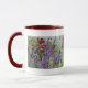 pic of gorgeous purple salvia and burgandy mums on a burgandy ringer mug. STUNNING. 2 sided pics for a view from any angle