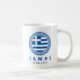 Samos, Greece coffee mug featuring the national flag of Greece inside a Greek blue Aztec circle. This mug is perfect for you to enjoy drinking your coffee while you are on vacation in Samos, Greece or if you are proud to be from Samos.