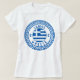 Samos, Greece women's T-Shirt featuring the National Flag Of Greece inside an Ancient Greek pattern circle symbol. Enjoy wearing this T-Shirt while you're on vacation on the beautiful Samos island or give it as a gift souvenir.