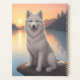 Samoyed sitting by a lake at sunset. Add this image to other products. Puzzles, planners, notebooks ornaments tiles phone cases more.with this design in my stores. Add your own text too. Lots of pets in my store.