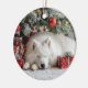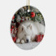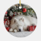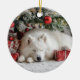 This adorable Christmas ornament, featuring a Samoyed lying under a Christmas tree, is a wonderful gift for any Samoyed lover.