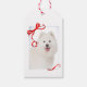 This beautiful Christmas gift tag, featuring a Samoyed with a festive red bowtie, is a perfect match for our Samoyed Christmas gift bag.