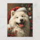 Wishing you a pawsitively festive season! This Christmas card features an adorable Samoyed donning a Santa hat, spreading cheer with its fluffy charm. The whimsical image captures the spirit of the holidays, promising warmth and joy. Send your loved ones a furry dose of holiday happiness with this heartwarming card, as the Samoyed brings a touch of canine magic to your Christmas wishes.