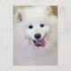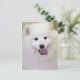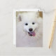 This dog breed-themed postcard design features a digital colour photograph of Teddy, a white purebred samoyed from Frederick County Animal Control. It makes a unique gift for dog lovers!