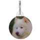 Samoyed Husky Dog Tags.Made from 100% recycled steel for extra durability, these tags are guaranteed to never wear out. Available two sizes, easily design a one-of-a-kind tag that fits your pet’s personality! Dimensions: 2.2 cm diameter (small), 3.1 cm diameter (large) Designs and text printed in fade-resistant, full colour ink .Metal key ring attachment to hang directly on collar included. Made in the USA