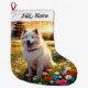 Samoyed dog sitting in a meadow of flowers. Puzzles, planners, notebooks with this design in my stores.. Add this image to other products. Add your own text too. Lots of pets in my stores.
