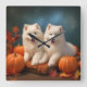 Samoyed Puppy Autumn Delight Pumpkin Square Wall Clock