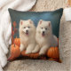 Samoyed Puppy Autumn Delight Pumpkin Throw Pillow