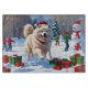 Samoyed Running in Snow with Christmas Hat Cutting Board