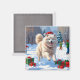 A joyful Samoyed runs playfully through the snowy winter scene, wearing a festive red Christmas hat. This delightful design highlights the breed’s fluffy white coat, smiling expression, and friendly personality while capturing the warmth and magic of the holiday season. A heartwarming winter moment full of festive cheer.