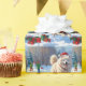 Samoyed Running in Snow with Christmas Hat Wrapping Paper