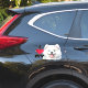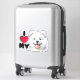 This sticker features a delightful Samoyed puppy with a bright and cheerful expression. The puppy has fluffy white fur, expressive blue eyes, and its tongue is playfully sticking out, adding to its endearing charm. To the left of the puppy's face, there is a shiny red heart, symbolizing love and affection. Great for new Fur Baby parents.