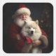 Samoyed With Santa Claus Festive Christmas Square Sticker