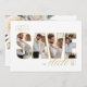 This wedding suite with it's lush, dramatic florals from creamy white to blush pink, gold swirl accents and beautiful watercolor backgrounds, creates an elegant, romantic vibe, giving just a hint of what guests can expect on your big day. This unique 'Save the Date' card provides a template to easily add four of your best photos to display in the lettering background. A corner floral and striking gold script text add to the overall elegance of this card. Search ID1022 to see all the products in this wedding suite.