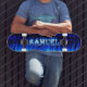 Samuel skateboard blue fire and flames design.