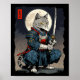 Samurai Cat Japanese Retro Fighter Cat Moon Ukiyo- Poster