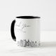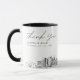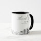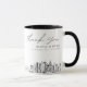 Modern San Antonio skyline coffee mug favour gift with "thank you" script. The design showcases a stunning sketch with the ability to customize your names and exact location. Enter the Zazzle design tool for additional customizations.