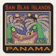 Kuna Indian mola, tropical islands, man in hammock, island monkeys, palm trees, San Blas Islands, Panama, Virginia Vivier, Vagabond Folk Art, black red blue, yellow orange green.