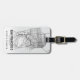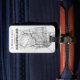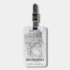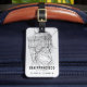 A unique luggage tag featuring the city of San Francisco overhead map, including the latitude and longitude.