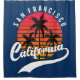 San Francisco shower curtain with a retro design that features a sunset and palm trees on Old Glory Blue customizable background colour. This design also has California in a handwritten font with a swash tail glyph for that stylish retro look. This shower curtain is just for you if you are from San Francisco or you can get as a gift or souvenir for someone.