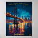 Embrace the vibrant atmosphere of San Francisco with this striking poster of the city’s iconic skyline at dusk. The reflection of the city lights over the bay captures the magic of a lively night under a golden sky, ideal for adding warmth and wanderlust to your living space. Perfect for lovers of urban landscapes, this artwork brings the iconic essence of San Francisco into your home with a dash of romance and adventure.