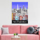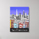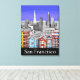 Canvas in an illustration of the city of San Francisco, in bright primary colours paired with black and white line art