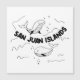 Simple cartoony design with wales, bubbles, and waves and "San Juan Islands" written in bold text.