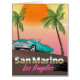 San Marino Los Angeles vintage style travel poster print. A beautiful travel poster of a classic american car riding in the evening twilight sunset.