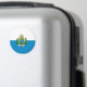 The state and war flag of San Marino is formed by two equal horizontal bands of white (top) and light blue with the national coat of arms superimposed in the center; the coat of arms has a shield (featuring three towers on three peaks) with a closed crown on top, flanked by an oak and laurel wreath, with a scroll below bearing the word LIBERTAS (Liberty). The two colors of the flag represent peace (white) and liberty (azure).