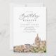This birthday invitation and itinerary template features a watercolor painting of the San Miguel de Allende, Mexico skyline and a backside itinerary. Easily edit most wording to match your event.