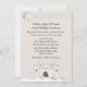 Fairytale beach theme wedding invitation done in a light tan colour, with graphics of a sand castle outline surrounded by seashells. A dashed band, at the top is decorated with one shell, on the left side. Personalize the black text for your special day.