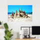Clourful beach poster of fantastic sand castle by the Pacific Ocean at Noosa, Queensland, Australia