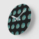 Sand Dollar Abstract Pattern Gift Favour Teal Blac Round Clock