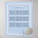 This seating chart is perfect for any couple planning an elegant beach wedding. The design features a creamy sand dollar and a light blue starfish with a sky blue background. The design is finished off with a delicate sand colour border. The simple and fresh design can be personalized to suit your special event and will be the perfect table plan for any beach themed party, including; bridal showers, engagements, wedding showers, birthday parties and much, much more.