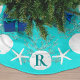 Sand Dollar Christmas Aqua Blue Monogram Brushed Polyester Tree Skirt