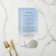 Ces cartes de menu sont parfaites pour tout couple qui planifie un mariage élégant à la plage. L'aménagement est composé d'un dollar de sable crémeux et d'une étoile de mer bleu clair avec un arrière - plan de plage bleu pâle. Le design est complété par une bordure de sable délicate. Le design simple et frais peut être personnalisé en fonction de votre événement spécial et sera le menu parfait pour toute fête sur la plage, y compris : douches nuptiales, fiançailles, wedding showers, fêtes d'anniversaire et bien plus encore.